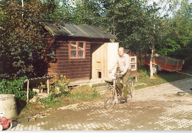 Hier auf dem Bild ist unser Musterbruthuhn zu sehen, ein Seidenhuhn, das mein Vater vor allem wegen seiner zuverlässigen Bruteigenschaften sehr mochte, zu seinem Leidwesen hatte das Huhn eine schwarze Haut , vor der es ihm im Kochtopf grauste, daher konnte das Seidenhuhn bei uns auch immer ein biblisches Alter erreichen. Einer der Geflügelzuchtfreunde meines Vaters, der auch immer regelmässig zu Besuch kam war unser Haas Anton aus Kötzting. Er erzählte von seinen seltenen chinesischen Hühnern, vor allem faszinierte ihn dabei die grünen Eier, die diese legen sollten. Wir glaubten ihm nicht uns so fuhr er gleich nach Hause und bracht ein paar exemplare mit. Die legte mein Vater gleich dem Seidenhuhn unter und bald hatten wir entsprechende bzw. ein entsprechendes Küken. Dieses wurde später als erwachsenes Huhn von einem unserer vielen einschichtigen Hähne getreten und heraus kam eine ganz spezielle Mischung, ein kleines dickes aber unscheinbares Huhn, das 1(!) große Feder am Hinterteil hatte, diese Feder allerdings stand nicht aufrecht nach oben sondern zeigte nach unten vorne zwischen ihre Beine. Dieses Huhn, es hatte natürlich einen Namen:"Haaserer", wie sonst" legte zeitlebens fleißig veilchenblaue Eier und blieb als eine der wenigen Einzelgänger vom Kochtopf verschont.
